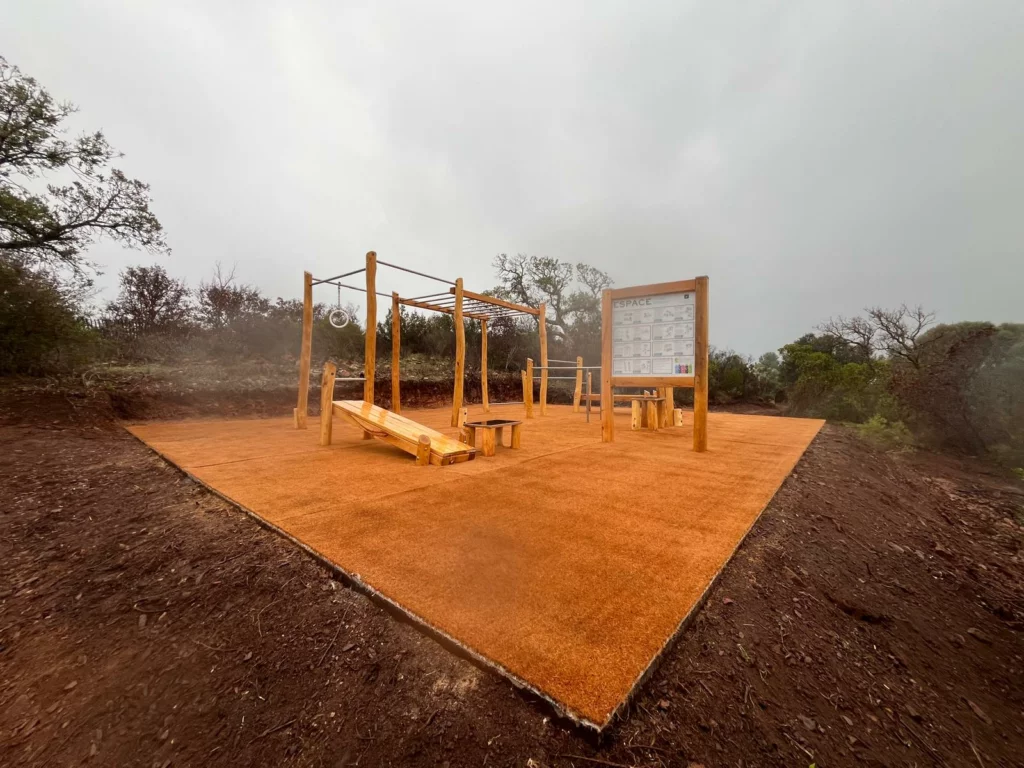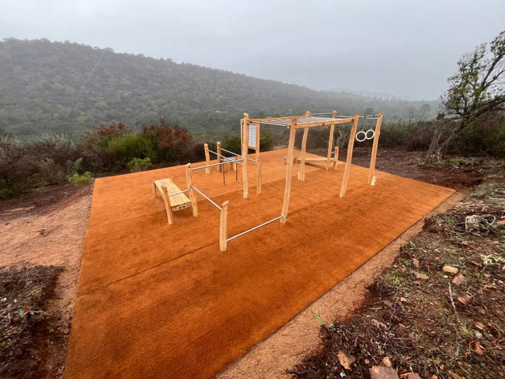 Dernière réalisation en date : une cage de street workout premium en robinier naturel, imaginée, fabriquée et posée en Corse, au sein du prestigieux Domaine 5⭐ Santa Giulia Palace.