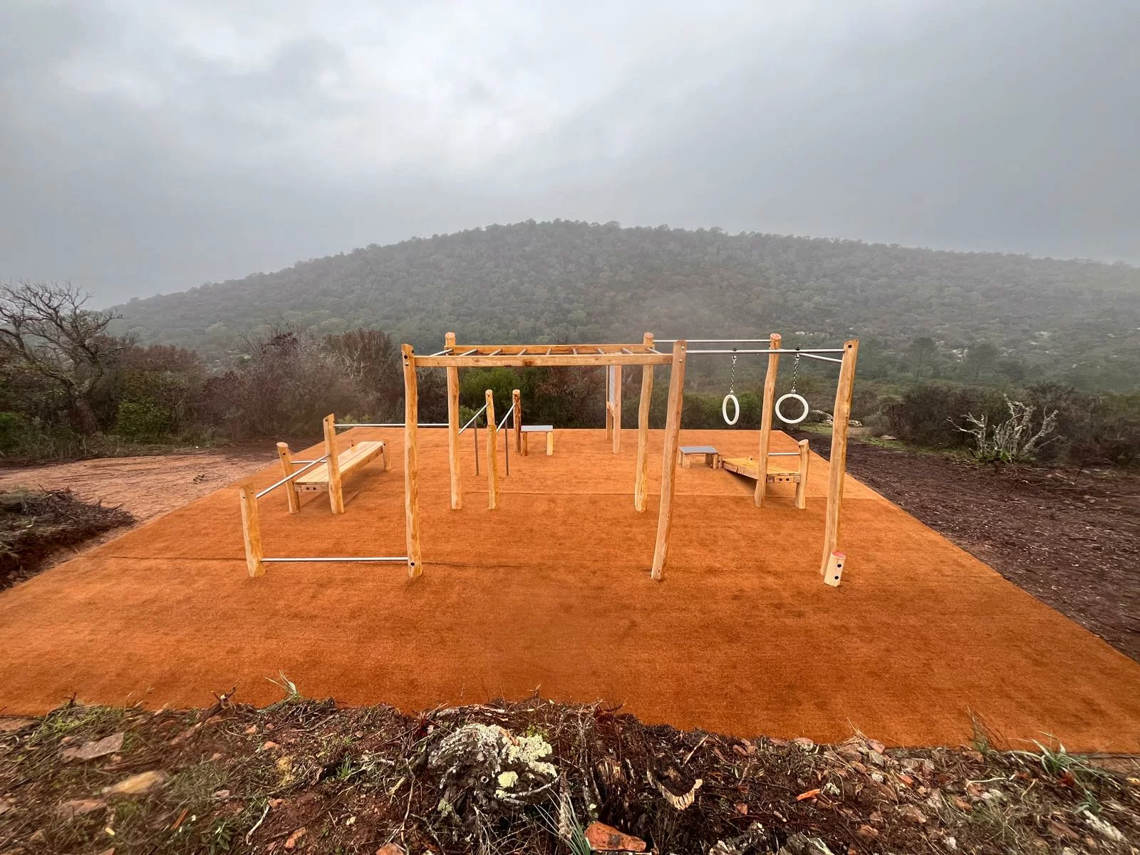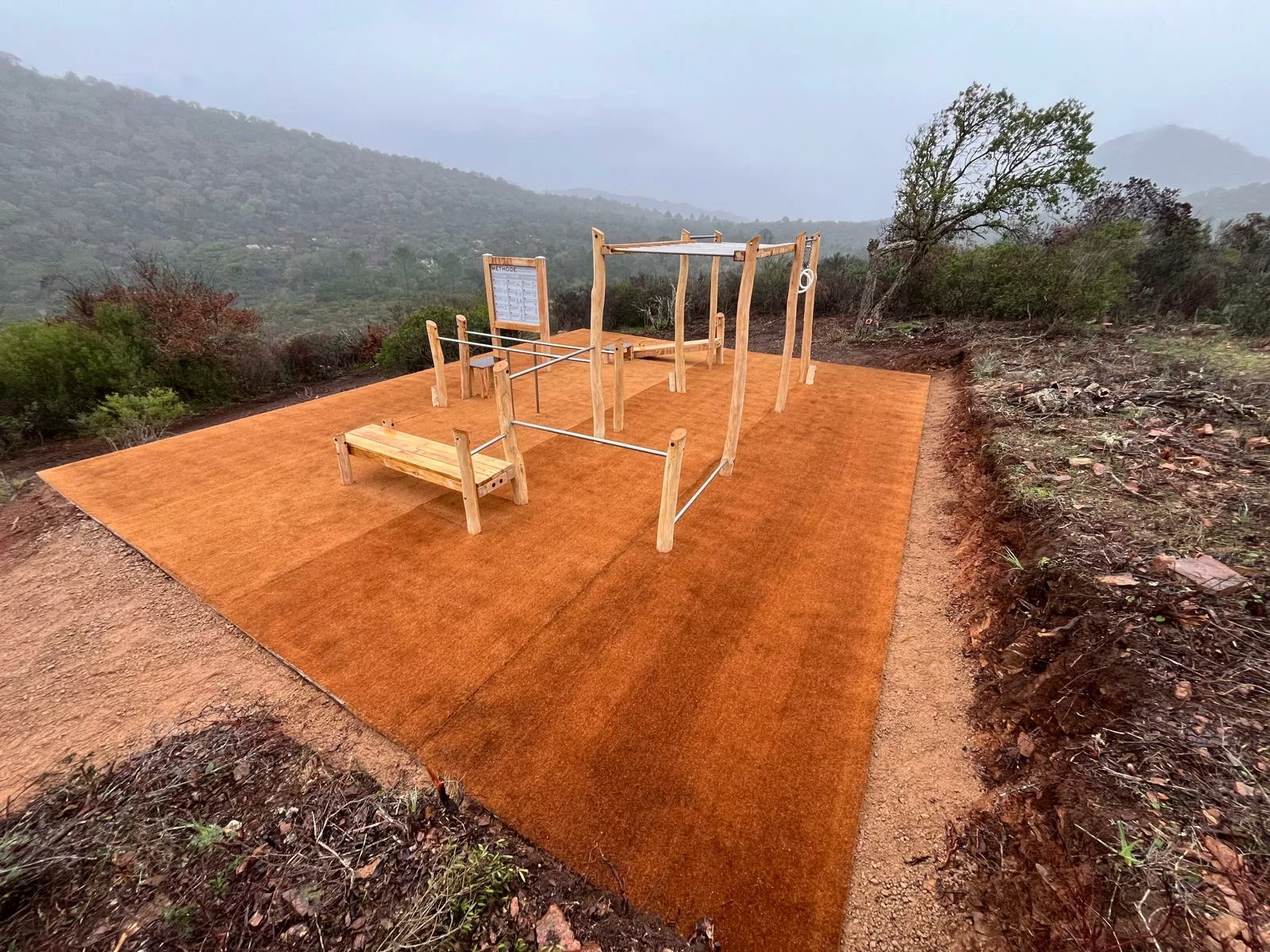 Dernière réalisation en date : une cage de street workout premium en robinier naturel, imaginée, fabriquée et posée en Corse, au sein du prestigieux Domaine 5⭐ Santa Giulia Palace.