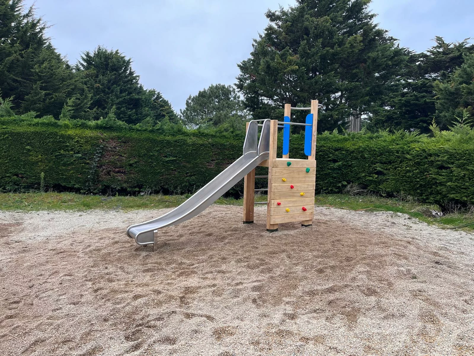 Le remplacement d’un ancien toboggan par une structure de jeux en robinier intégrant :