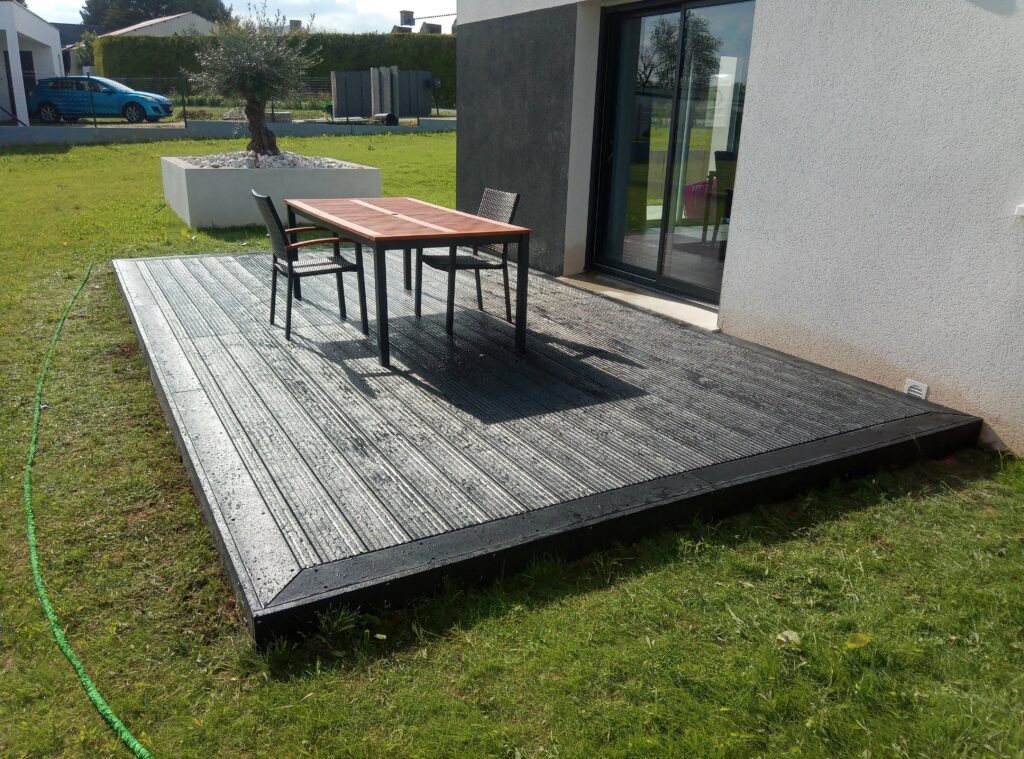 - Terrasses en Plastique Recyclé : Idéales pour les environnements exigeants, ces terrasses sont robustes et nécessitent peu d’entretien
